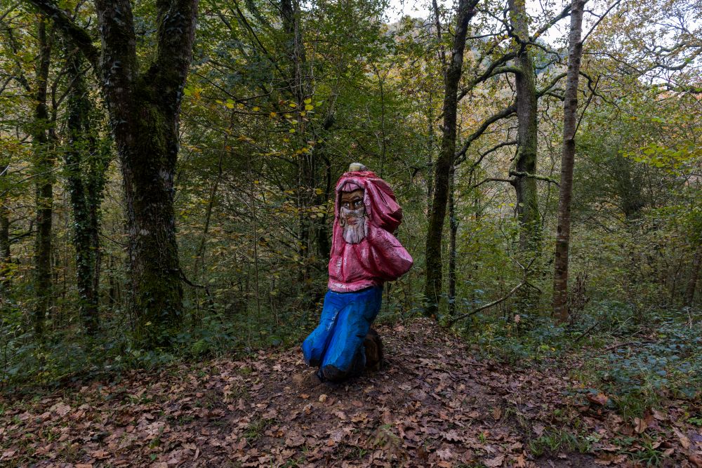 Parmi les chênes et les châtaigniers se dressent des sculptures de personnages légendaires comme l’ojáncano, le trenti ou l’anjana.